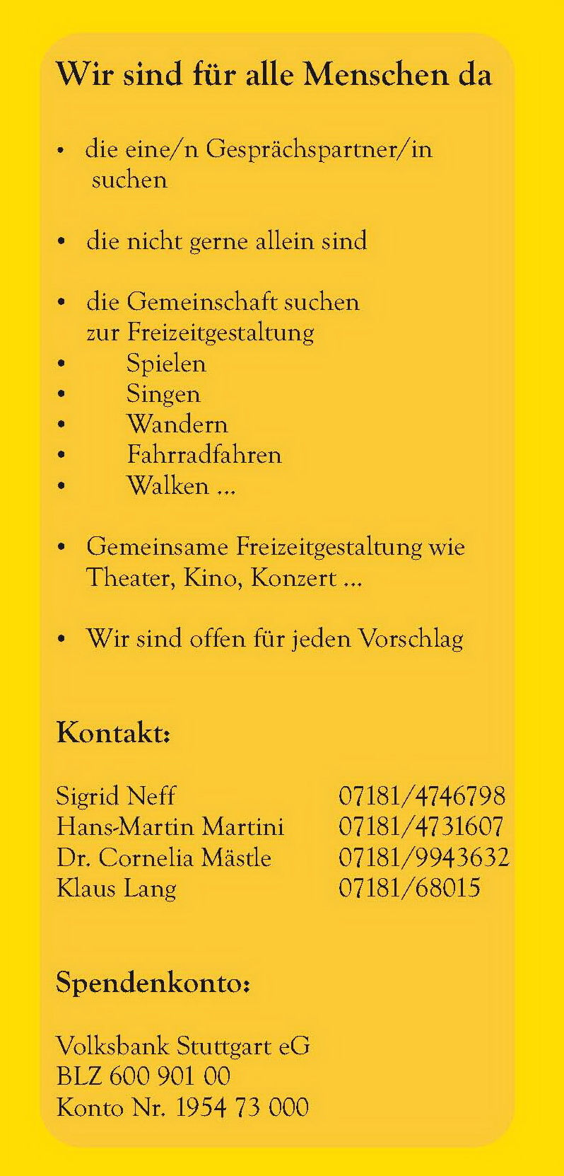 ... viele aktive Mithelfer, die sich am Planen und Durchführen unserer Treffs und sonstigen Aktivitäten beteiligen möchten.