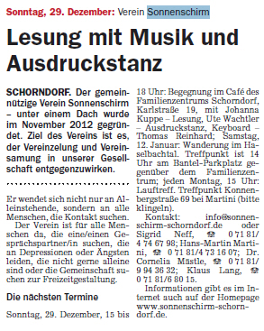 Wochenblatt - Lesung mit Musik und Ausdruckstanz: